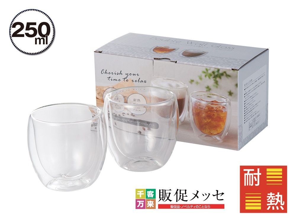 二重構造の耐熱ガラスにより、高い保温・保冷効果を発揮する機能的なグラスです。冷たい飲み物を入れても結露しにくいため、デスクやテーブルを濡らす心配がなく、熱い飲み物を入れても外側が熱くなりすぎず直接手に持つことができます。まるで飲み物が空中に浮いているかのような独特の視覚効果は、日常のティータイムを特別なひとときに変えてくれます。さらに、この商品はフルカラー印刷に対応しており、企業ロゴやキャラクター、自由なデザインを鮮やかに施すことで、プレミアムなノベルティを実現します。