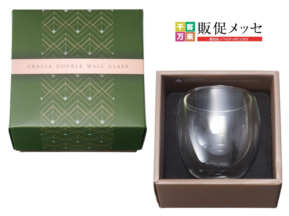 耐熱ガラスの二重構造(ダブルウォール)により、優れた保温・保冷性を実現したグラスです。温かい飲み物を入れても外側が熱くなりすぎず、冷たい飲み物を注いでも結露しにくいため、テーブルを濡らす心配がありません。250mlという使い勝手の良い容量で、コーヒーや紅茶、デザートカップとしても幅広く活躍します。高級感のある専用ギフトボックスに収められており、大切な方への感謝を伝えるシーンにふさわしい、洗練された印象を与える一品です。