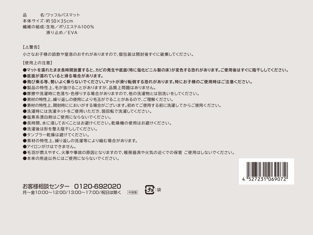 | 材質・成分 | ポリエステル(裏面EVA滑り止め加工) |