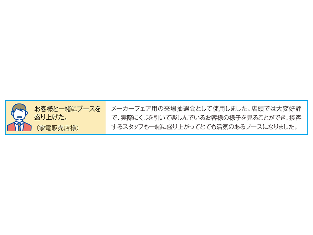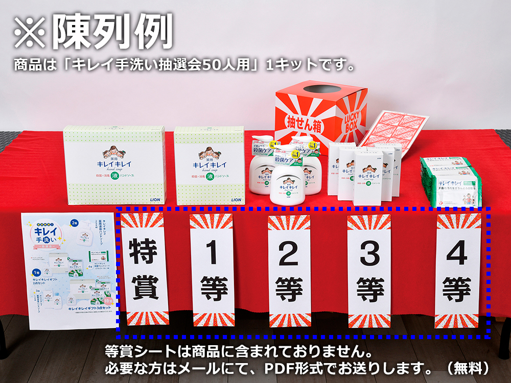 <キット内容> 30人用/50人用/100人用 特賞 ご当地ラーメン味めぐり7食セット・・・1本/1本/2本 1等 ご当地ラーメン味めぐり5食セット・・・1本/1本/2本 2等 ご当地ラーメン味めぐり3食セット・・・2本/2本/4本 3等 ご当地ラーメン味めぐり2食セット・・・3本/3本/6本 4等 比内地鶏らーめん1食・・・23本/43本/86本 <付属品> ■抽選用くじ(30人用30枚/50人用50枚/100人用100枚) ■抽選箱 1個 ■くじ明細書 1枚 ■告知用A4カード 1枚 ※画像掲載のポスターと同デザインのPDFデータを用意しております。ご希望の方は備考欄等でお知らせください。 |