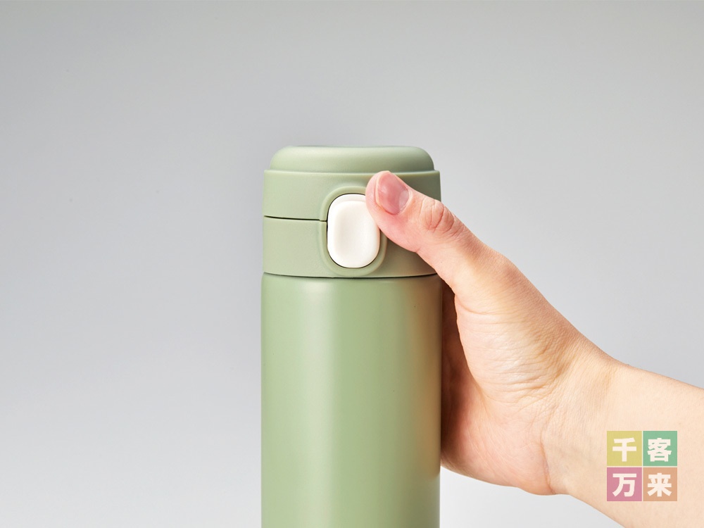 スライドロック機能付きのワンプッシュオープン仕様で、移動中や作業中でも片手で素早く水分補給ができる真空構造のボトルです。300mlという絶妙な容量は、バッグの中でもかさばらず、持ち運びに非常に便利です。広めの口径により氷も入れやすく、底面には滑り止め加工が施されているため安定感も抜群。ブラウンとグリーンのアースカラーは世代や性別を問わず愛され、本体への名入れ印刷を行うことで、使うたびに貴社の存在を身近に感じていただけるプレミアムなノベルティとなります。