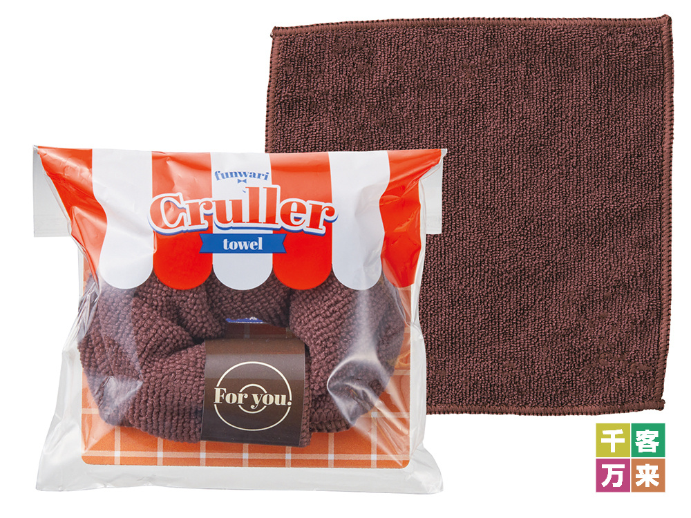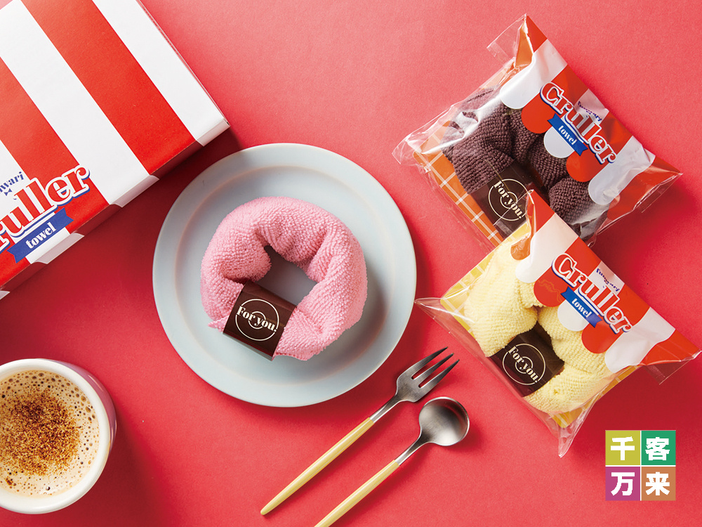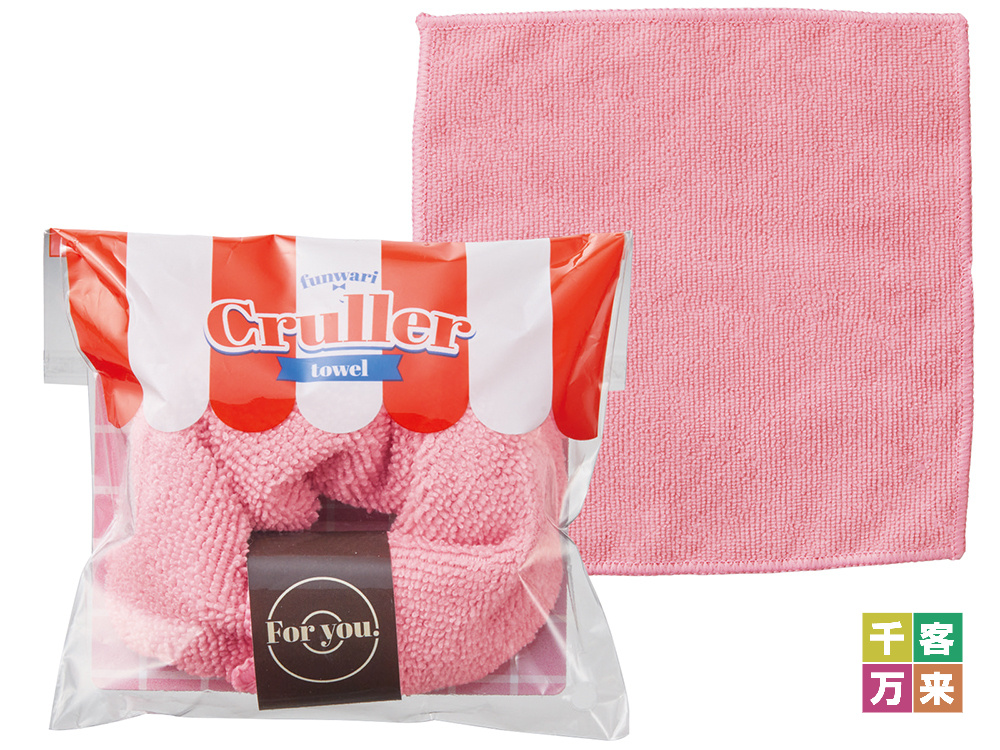 まるで本物の焼き立てドーナツのような、遊び心あふれるマイクロファイバータオルです。ふんわりとした質感のタオルをクルーラー型に成形し、ドーナツショップを彷彿とさせるポップなパッケージに詰め込みました。パッケージには貴社のロゴシールを貼付でき、実用的なハンカチとしてだけでなく、日常に「可愛さ」と「癒やし」を届けるサプライズ・ノベルティとして、高い好感度を獲得します。