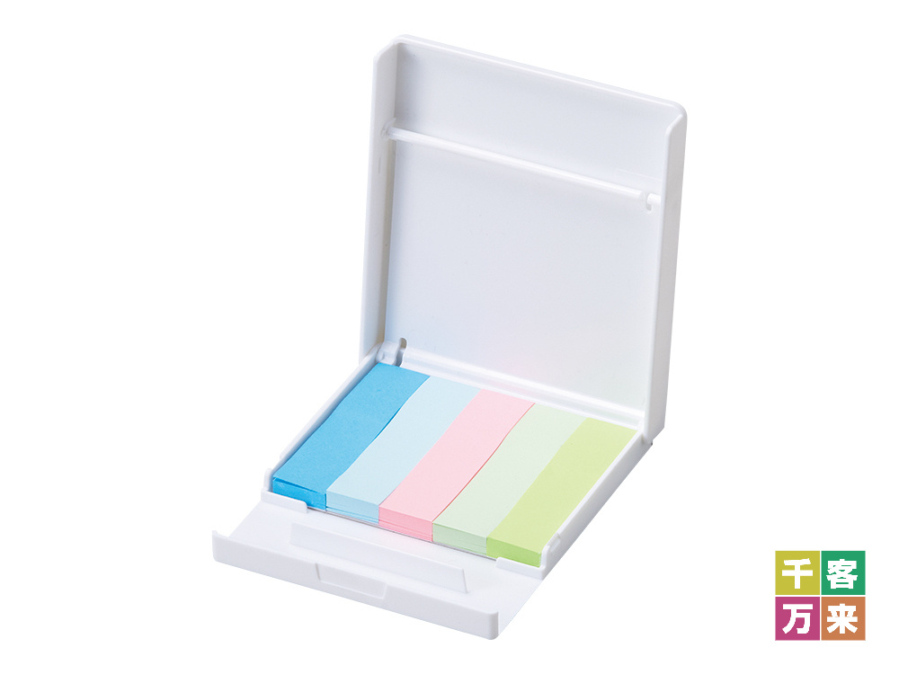 5色のカラフルな付箋セットと、角度調整が可能なスマホスタンドが一つになった便利なアイテムです。折りたたむと非常にコンパクトになるため、カバンの中でもかさばらず、持ち運びにも最適です。スタンド部分は、動画視聴やビデオ会議の際にスマートフォンを安定して固定でき、作業効率を向上させます。本体の天面はフラットで広いスペースがあるため、名入れ印刷が非常に美しく映え、デスクの上で貴社のロゴを日常的に目にしていただける高い宣伝効果を発揮します。