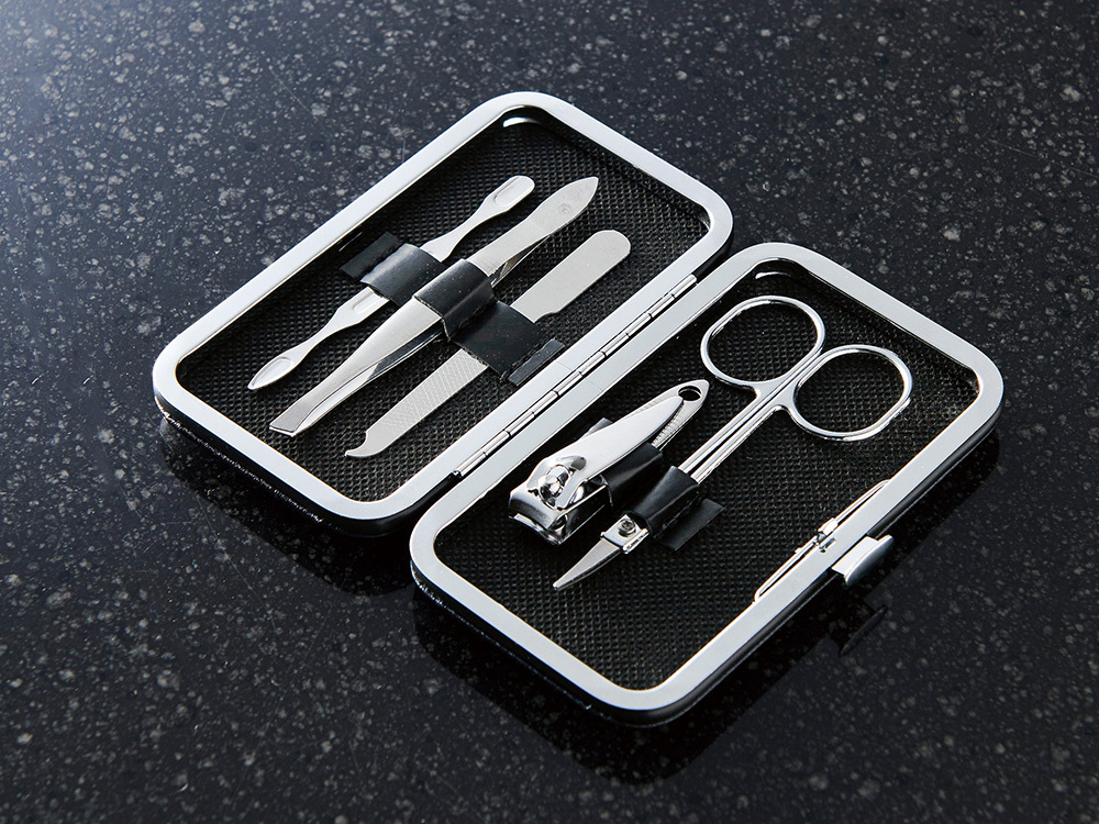 <セット内容> ・プッシャー×1・ピンセット×1・爪やすり×1 ・爪切り×1・眉毛カットはさみ×1 |
