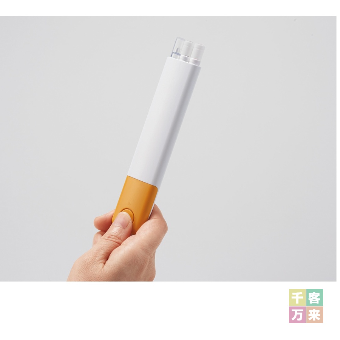 ワンプッシュで中身がポップアップする、スマートなケース一体型のステーショナリーセットです。最大の目玉は、芯が摩耗しにくく長時間書き続けられる「無限ペン」。さらに、黒・赤2色のボールペンと、封筒の開封に便利なセラミックオープナーまで内蔵されています。スリムなスティック形状に4つの機能を凝縮しており、ペンケースを持ち歩かなくてもこれ一本でビジネスや学習の主要シーンをカバーできる、先進的なアイテムです。