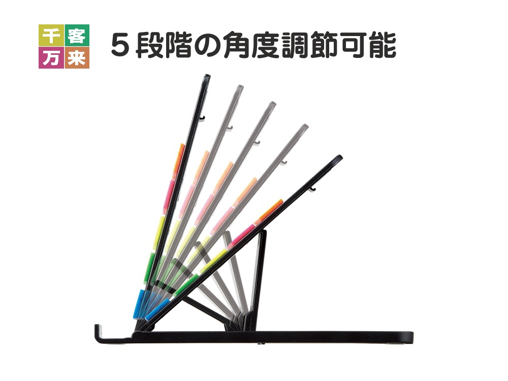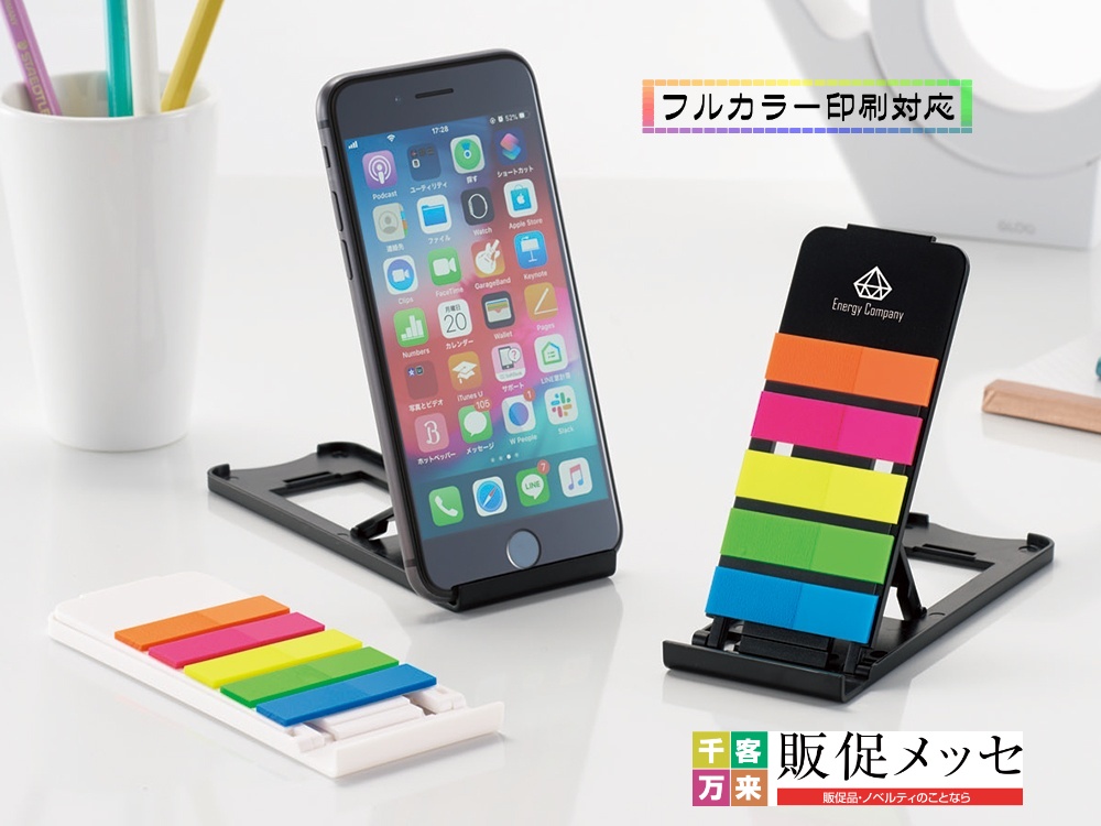 主な機能: スマホスタンド(5段階角度調節)、5色インデックスふせん、薄型設計