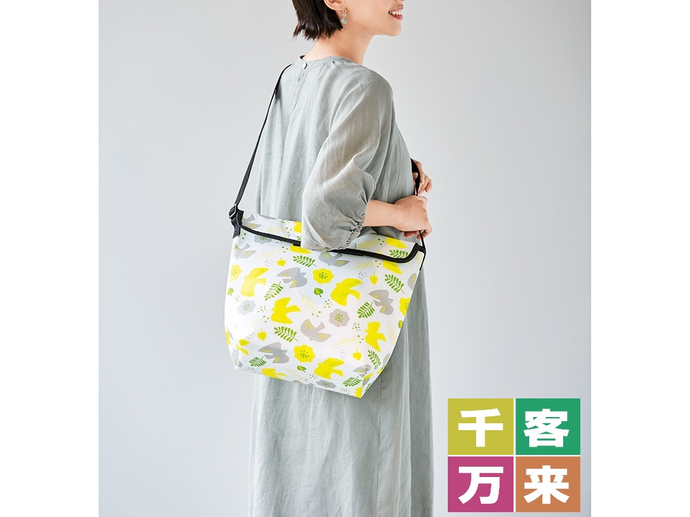 北欧テイストの温かみのある鳥と植物のパターンが目を引く、デザイン性の高い保冷温バッグです。最大の特徴は、長さ調整が可能なショルダーベルト。重い荷物を入れた際も斜め掛けにすることで安定し、小さなお子様連れや自転車移動の際でも両手が自由に使えるため非常に快適です。内部は温度をキープするアルミ蒸着フィルム張りで、500mlのペットボトルを立てて収納できる絶妙な高さを確保。お買い物から公園でのピクニック、フェスまで、機能的でありながらファッションの一部として持ち歩きたくなる、日々に「彩り」を添える一品です。