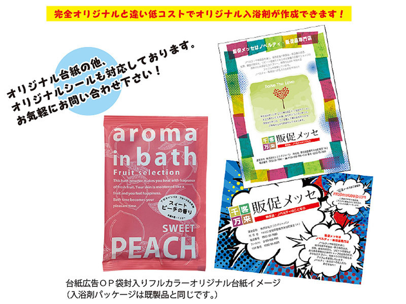 一日の終わりに、優雅な雰囲気でリラックスしたバスタイムを過ごしてみませんか? 普段頑張っている人への癒しに、ちょっとしたプレゼントとしてお渡ししたくなるノベルティです。