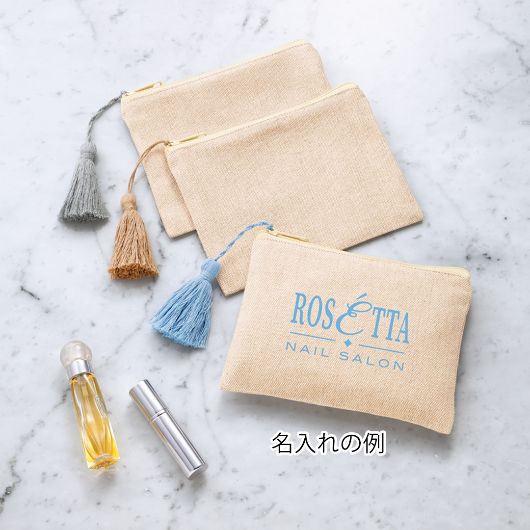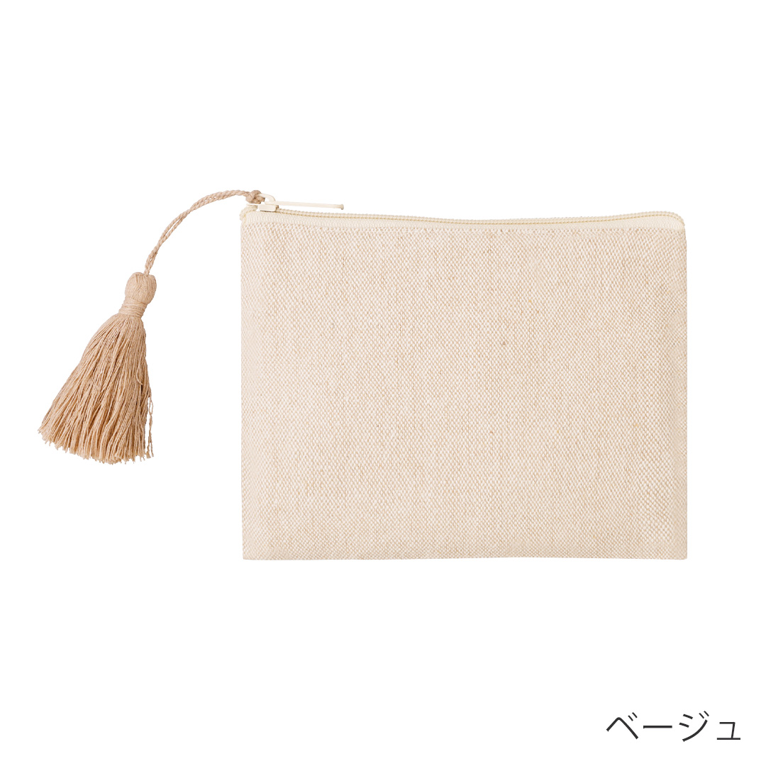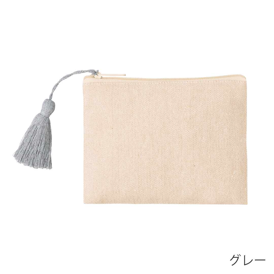リサイクルコットンタッセル付きフラットポーチ |