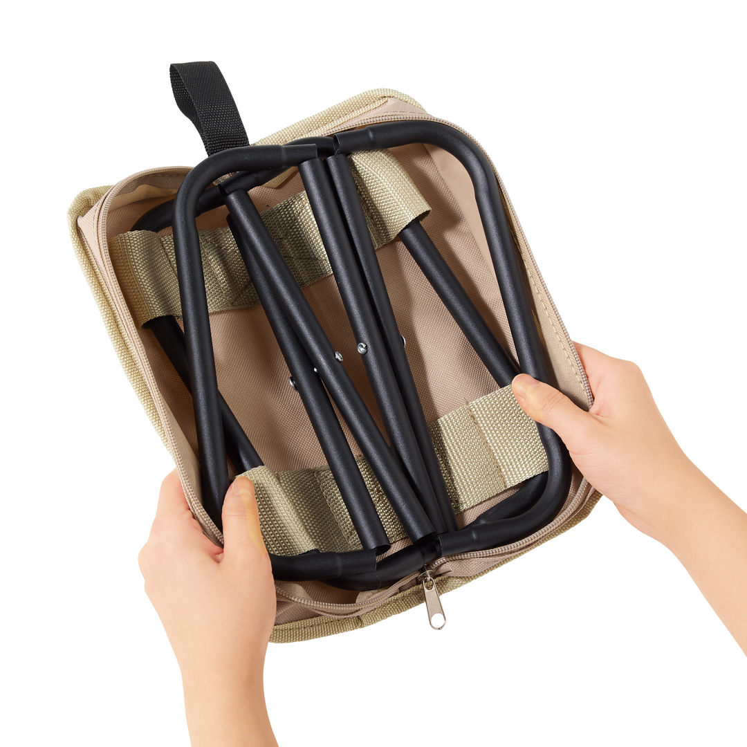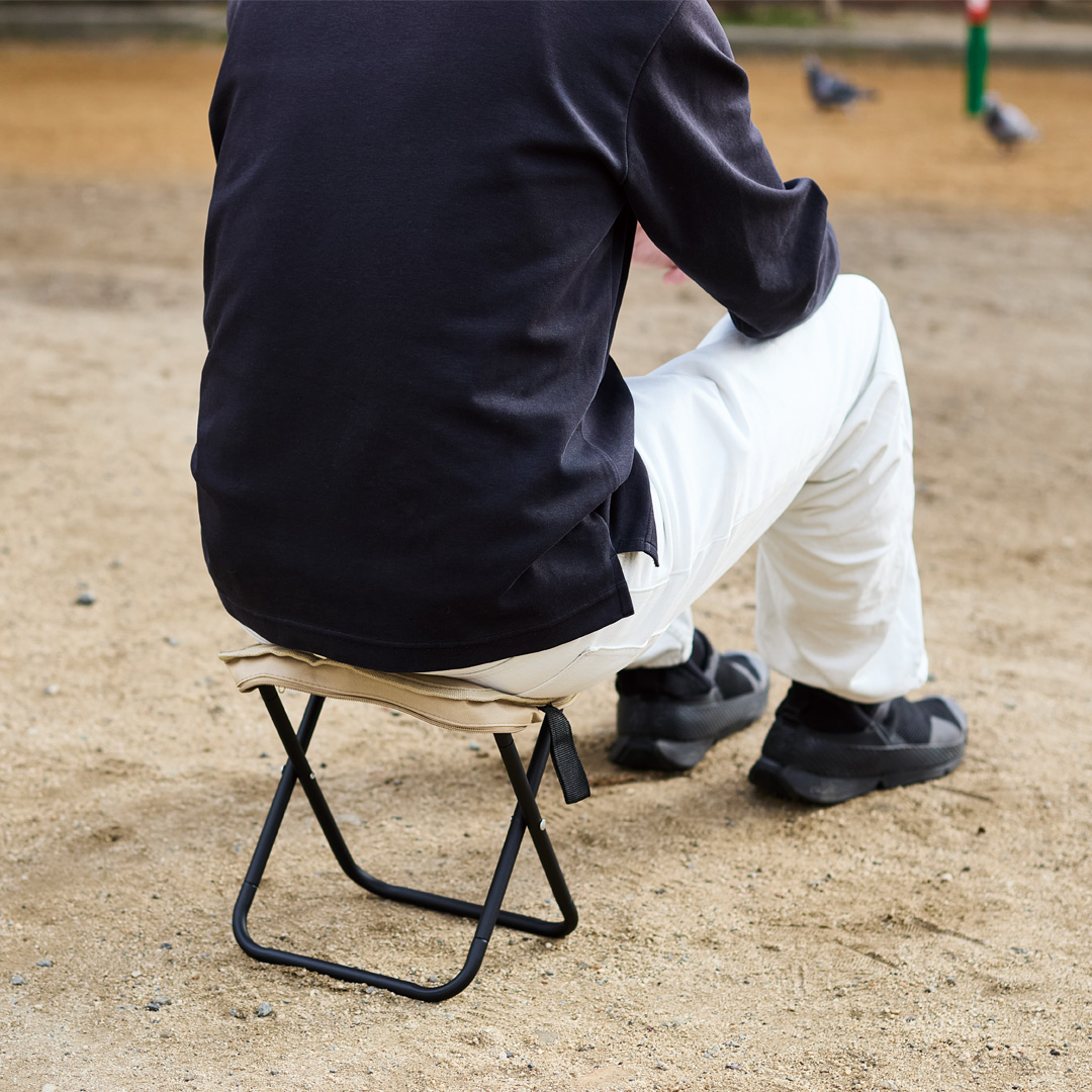 省スペースで丈夫な優秀小型チェア。アウトドアシーンなど、屋内外問わず大活躍間違いなしです。