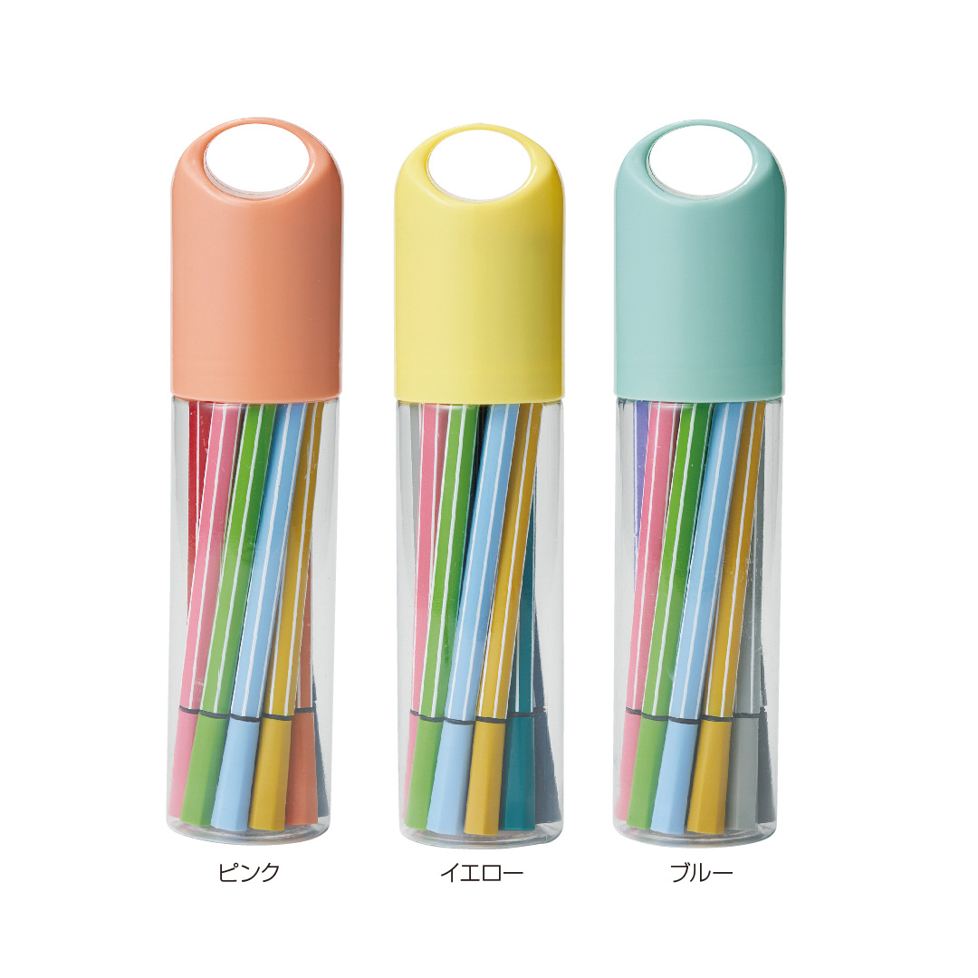 使いやすい12色がセットになった、かわいいキャップのケース付きペンセットです。