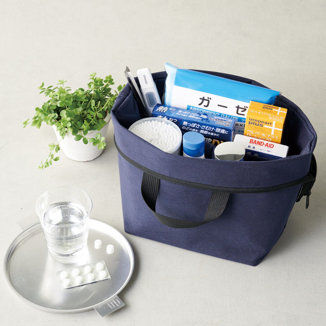 仕切りが3つあり中身もしっかり自立するので、かさばりやすい薬などの収納に便利です。