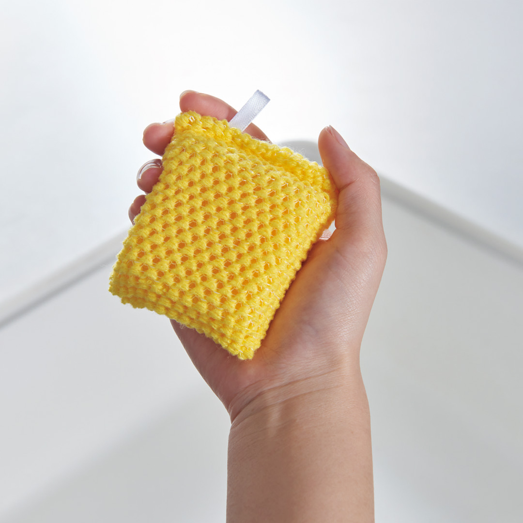 アクリル繊維のパワーで洗剤なしで汚れが落ち、掴みやすく洗いやすい手のひらサイズが魅力です。