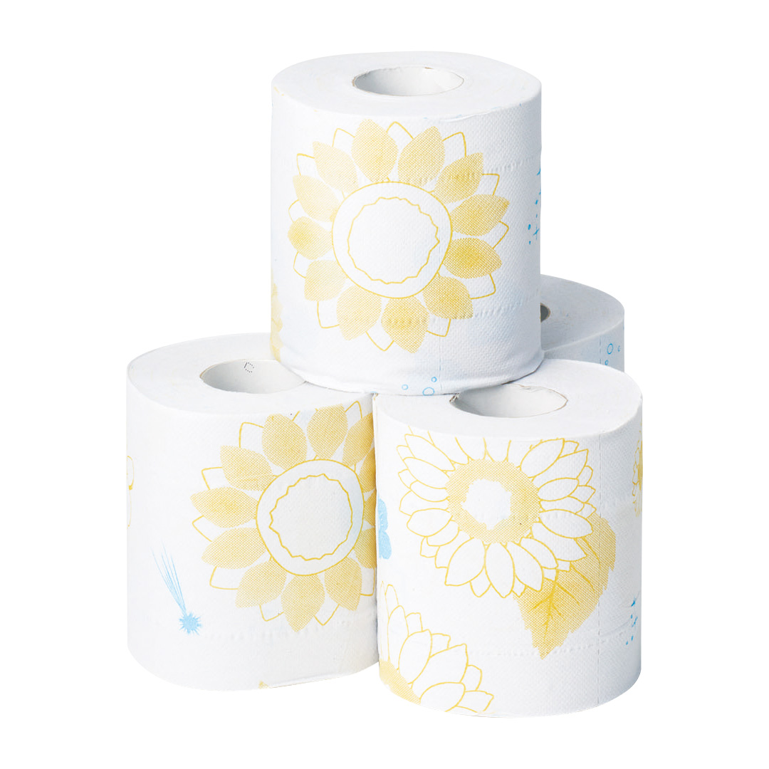 夏の象徴であるひまわり柄のパッケージに、使いやすい12ロールを詰め込んだトイレットペーパーセットです。パッケージだけでなく、ペーパー自体にも可愛いひまわりのプリントが施されており、使うたびにトイレ空間を明るく華やかに彩ります。季節感あふれるデザインと、日常使いに嬉しい実用性を兼ね備えた、夏限定のおもてなしアイテムです。