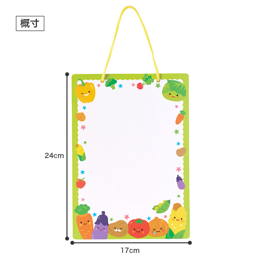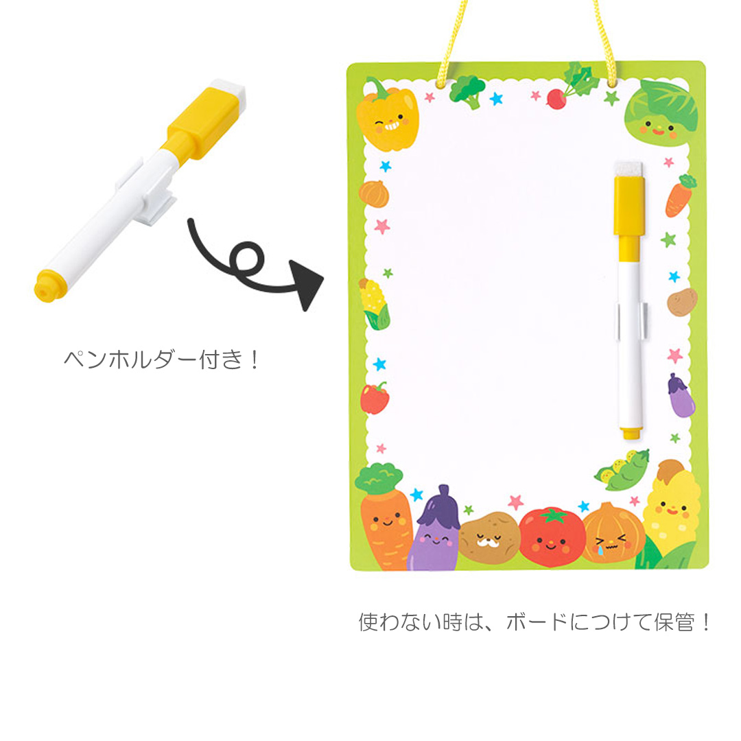 ボードの縁にあしらわれた、カラフルでかわいい野菜柄が目を引くミニホワイトボードです。 「今日の給食は何かな?」「旬の野菜を食べてみよう!」といった、親子で楽しむ食育コミュニケーションにぴったりのデザイン。キッチンやダイニングに置くだけで空間がパッと明るくなり、お子様が自然と食べ物への興味を持つきっかけを作ります。実用的なメモとしてだけでなく、家族の健康と笑顔を育むツールとして活用いただけます。