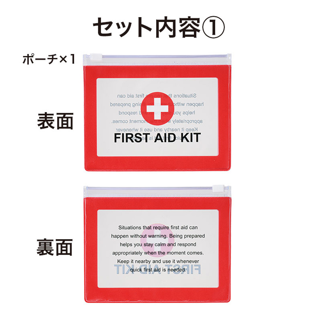 【5点セット内容】 ・ポーチ×1 ・マニュアルカード×1 ・ばんそうこう(M×2/S×2) ・マスク×1 ・ポケットティッシュ×1 ・ばんそうこう/エイトバン ※医療機器届出番号 27B3X00138000001 |
