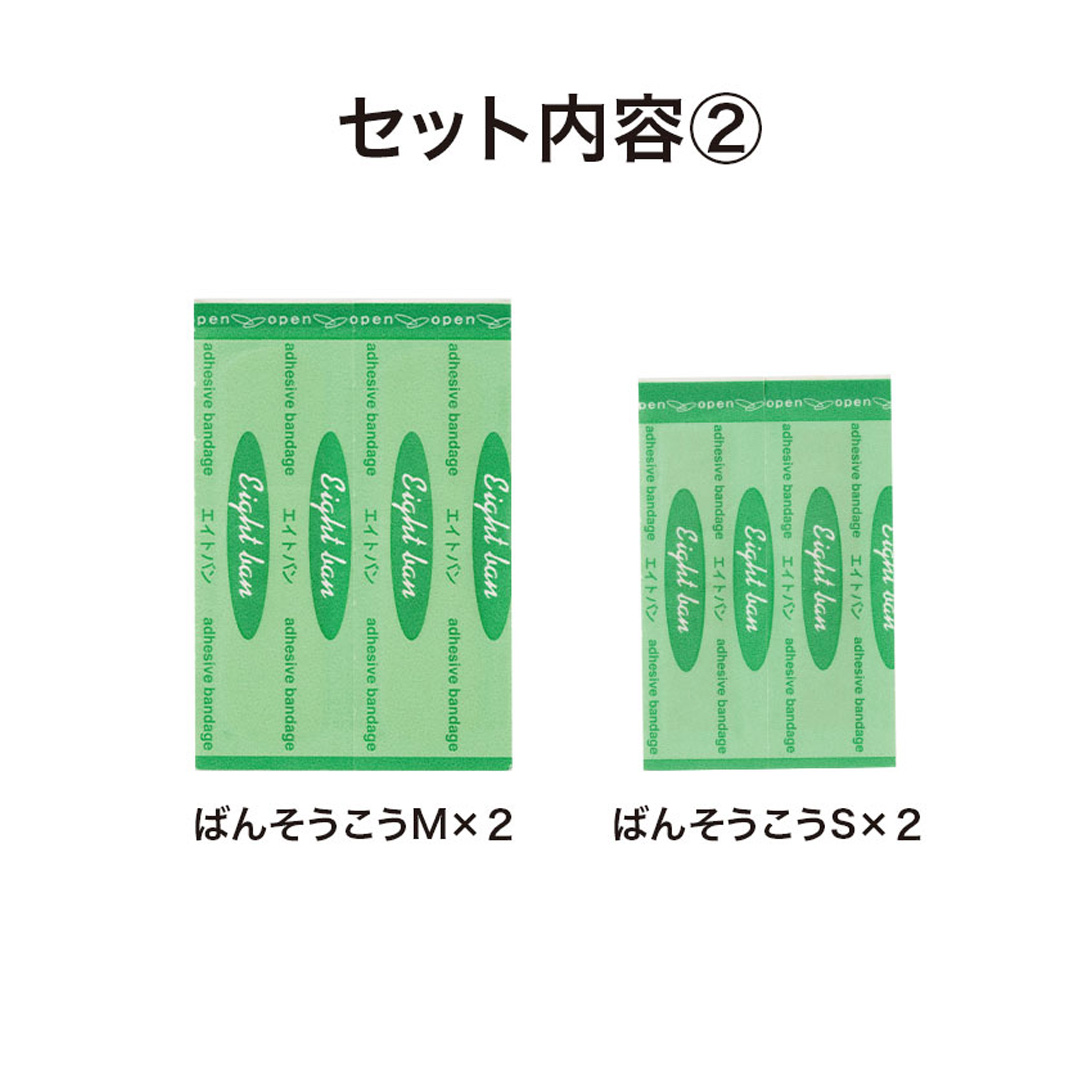 【セット内容】 ・ボトル×1 ・マニュアルカード×1 ・PBT包帯×1 ・サージカルテープ×1 ・ばんそうこう(M×2/S×2) ・とげ抜き×1 ・圧縮不織布タオル×2 ・マスク×2 ※ボトル/食品検査済 ※ばんそうこう/エイトバン 医療機器届出番号 27B3X00138000001 |